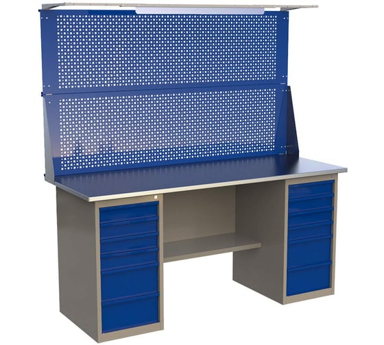 Верстак двухтумбовый ML6/ML6 с экраном 1600 и освещением IRONMEBEL M-ML6ML6MDCE1600ос