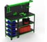 Верстак предназначен для удобной организации отдельного рабочего места на производствах, складах, гаражах, мастерских, и на других объектах. Модель оснащена светодиодным комплектом освещения. Обеспечивает комфортную работу пользователя. Используется в качестве дополнительного оборудования для верстаков . Модель оснащена прочными опорами из углового профиля столов . Имеется специальная перфорация, при помощи которой можно менять положение полок. Стол-верстак выполнен: - Столешница и полки из стали толщиной 1,5 мм; - Траверсы и стойки из стали толщиной - 2 мм. - Перфопанель - 0.8 мм Можно использовать в столярных и слесарных мастерских. Изделие обеспечивает рациональное хранение различных предметов на полках. Максимум распределённой нагрузки на весь верстак составляет до 500 кг. Максимум распределённой нагрузки на полку составляет до 200 кг. Крепление безболтовое. Цвет: темно-серый+зеленый. Порошковая покраска.