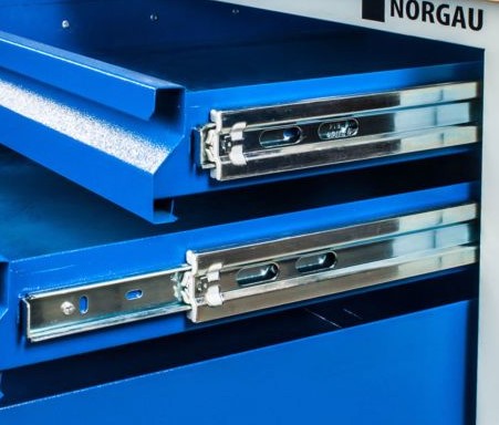 Надежные направляющие Благодаря использованию прочных металлических направляющих NORGAU 2000x750x859, 5 ящиков 101009003 имеет длительный срок службы. |