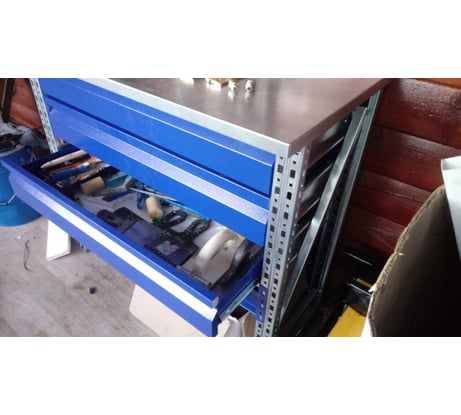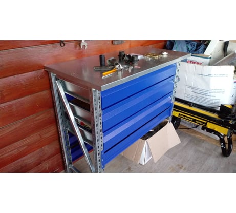 - Дополнительно верстак можно оборудовать полкой и выдвижным ящиком с нагрузкой 100 кг;