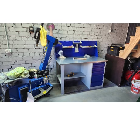 - Дополнительно верстак можно укомплектовать перфорированным экраном соответствующего размера, светодиодным освещением и аксессуарами для инструментов;