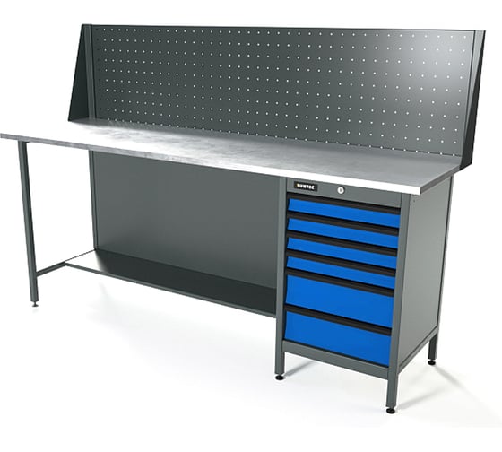 Верстак Runtec серии Standart, 2000мм, оцинк, тумба с 6-ю ящиками, экран 500, синий RAL 5005 RTS20Z-TS6-NS-P20-5005