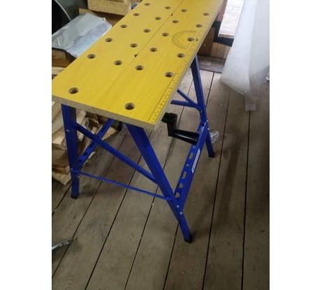 МДФ-столешница обладает необходимой жесткостью и прочностью, обеспечивая надежную поддержку при самых разнообразных типах работ. Благодаря своей складной конструкции верстак легко транспортировать и удобно хранить. Предусмотренные в МДФ-столешнице отверстия служат надежной фиксацией заготовок и упорами для используемого инструмента.