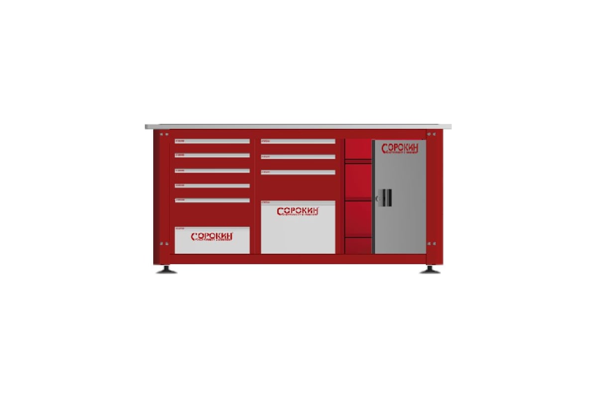 Верстак Сорокин 3.3 широко используется в мастерских различного профиля. Предназначен для организации рабочего места при выполнении ремонтных работ. Устойчивость конструкции обеспечивают опорные ножки, которые входят в комплект.