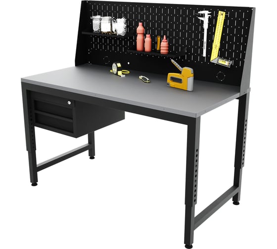 Регулируемый верстак-стол с тумбой и одинарной перфопанелью, 1200x600 мм GREENBERG VERSTAK_REG_T_P1_1200х600