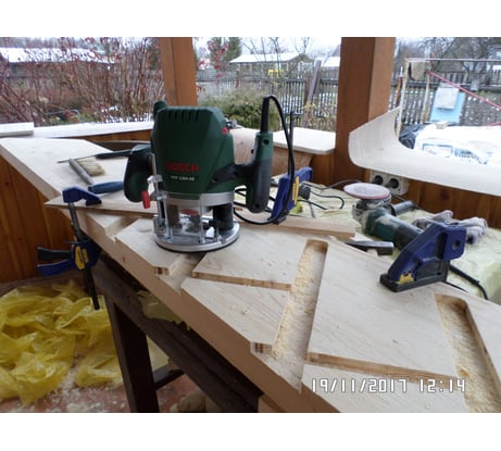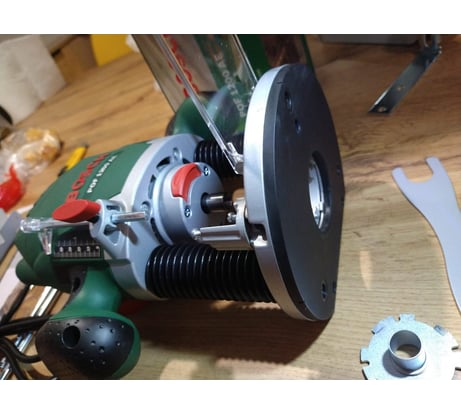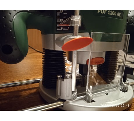 Фрезер я выбирал, наверное, месяца два. Инструмент настолько универсальный и нужный, что хотелось выбрать тот самый, единственный вариант. Почему я остановился на Bosch POF 1400? Модель невероятно популярная, есть огромное количество отзывов, видеообзоров в интернете. Еще до приобретения я знал об этом фрезере всё! Для меня принципиальным моментом было наличие кейса. Я часто езжу на дачу, беру с собой инструменты. Кейс довольно прочный и вместительный. Помещается параллельный упор, цанги, копировальная втулка и другое. Подробнее об этом чуть позже. Помимо этого, в кейс помещается дополнительно набор фрез, карандаши, нож и другая мелочёвка. Кейс сам выполнен из пластика, но пластика прочного. Как я сказал, в комплекте не одна цанга, а три. Это мегаудобно, мы можем значительно увеличить функционал фрезера благодаря разным цангам. В комплекте цанги на 6 мм, 8 мм и четверть дюйма. Нет возможности поставить цангу на 10 мм, но и без этого я доволен. Естественно, для замены цанги есть блокировка шпинделя. Правда, лично мне не совсем удобно нажимать эту кнопку. Еще одним важным для меня моментом была подсветка. Она есть далеко не на всех моделях, здесь она присутствует, но не могу сказать, что очень помогает. Точнее так. На высоких скоростях подсветка светит ярко, на низких тускло. Вот такая особенность. Но мне всё равно подсветка нравится, с ней как-то приятнее работать, что ли. Есть плавный пуск. Для меня современный инструмент обязательно должен быть с плавным пуском. Ведь реализовать это несложно, а нагрузка на двигатель значительно уменьшается. Да и в руках при старте нет рывка. Работать приятно. Особо хотел бы отметить регулировку глубины погружения. Шкала очень точная, фиксируется надёжно ограничитель. И есть очень крутое колёсико точной подстройки, точность можно до 0,1 мм настроить. Реально можно настраивать очень точно. В одном проекте я экспериментировал с точной подстройкой и добился потрясающей точности. Не поленитесь и разберитесь с этим колёсиком, не пожалеете. Ну а рабочий ход фрезы 55 мм, неплохой показатель для такого фрезера. Обороты регулируются колёсиком от 11 до 28 тысяч в минуту. Проверял на тахометре, на всех скоростях число примерно соответствует паспорту. Это наиважнейший показатель. То, с какой скоростью фреза обрабатывает заготовку – это успех или неудача вашей поделки. Обязательно регулируйте скорость в зависимости от фрезы и материала. Кстати, есть стабилизация числа оборотов. Штука классная. Есть в комплекте также параллельный упор. Он очень ровный и прочный. Я замерял углы, фрезер идёт строго параллельно краю заготовки. Упору можно доверить ровность торца. Есть также копировальная втулка на 17 мм в комплекте. Штука крайне полезная, иногда пользуюсь копировальной втулкой при изготовлении каких-то поделок. Моё любимое занятие – делать менажницы, тарелочки, кружки. Но возможностей у фрезера просто миллион! Скруглить края, отпилить, сделать паз, да просто всё не перечислить! Вот еще, к примеру, в комплекте, есть центрующий стержень и пазовая фреза. С их помощью можно вырезать идеальный круг! Фреза заточена идеально, работать одно удовольствие. Держать инструмент в руках приятно, рукоятки прорезинены, довольно мягкие. Есть один нюанс - если фрезер потрясти, внутри болтается шайбочка на направляющей. В верхнем положении фрезера ш