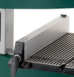 Параллельный упор выполнен в виде плоской широкой панели (входит в комплект). Его можно поставить вертикально (для тонких и высоких заготовок) или плашмя, зафиксировав эксцентриковым зажимом. Высота распиловки устанавливается вращением рукоятки.