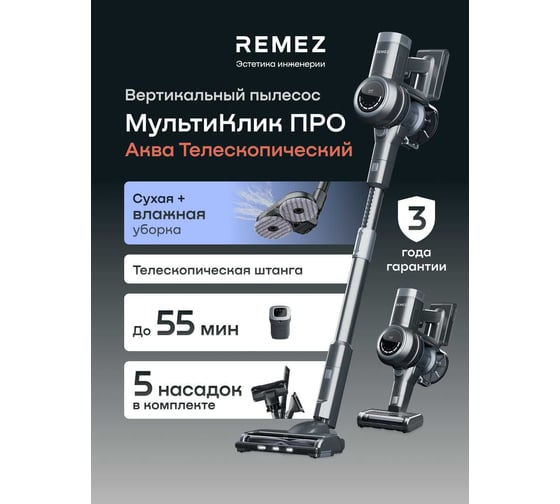 Вертикальный беспроводной пылесос Remez multiclick pro aqua RMVC-534 ЦБ-00000585