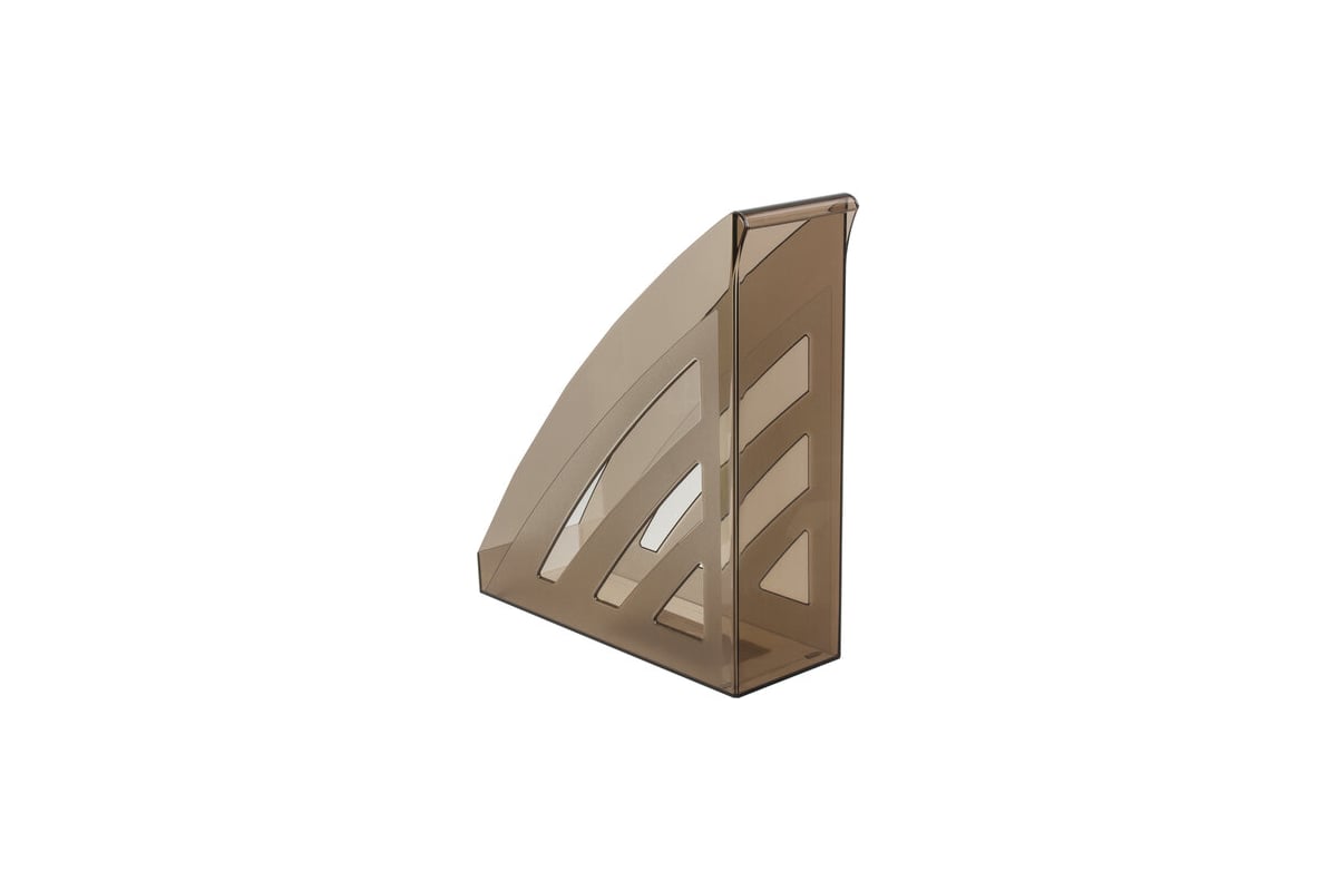 Изготовлен из прочного полистирола. Размер (ГхШхВ) - 245х90х285 мм. Обладает устойчивой конструкцией, благодаря которой удобен для хранения объемных документов и папок. Выполнен в тонированном сером цвете.