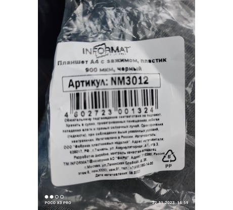 Вертикальный планшет INFORMAT А4 пластик двусторонний PVC черный с зажимом NM3012 На страницу товара114 ₽
