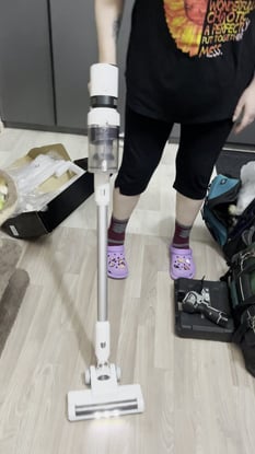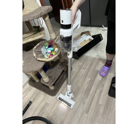 Хорошо пылесосит, качество на твердую 4, насадки удобные в комплекте. Хороший акб.