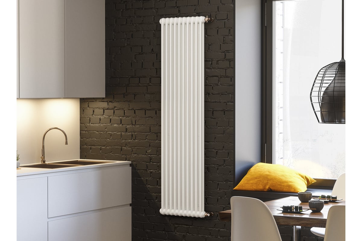 Вертикальный трубчатый радиатор GUARDO PILON двухтрубный 1800 мм высотой, 204 мм шириной, 4 секции, боковое подключение 3/4", белый 2T-1800 4 BK 3/4"