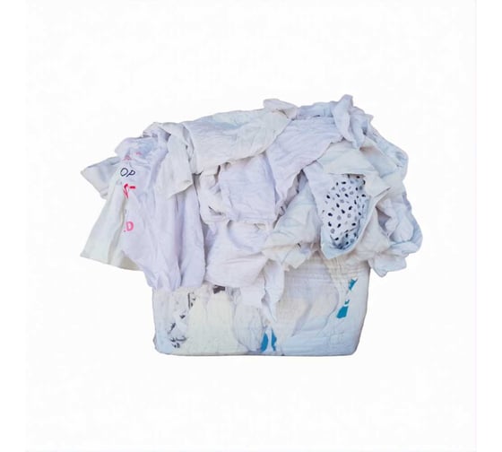 Идеальный баланс функциональности и визуального контроля. Наша ветошь производится из переработанного трикотажа преимущественно белого цвета с яркими акцентами — цветными манжетами, воротниками или контрастной строчкой. Это делает материал не только практичным, но и легко контролируемым в работе.