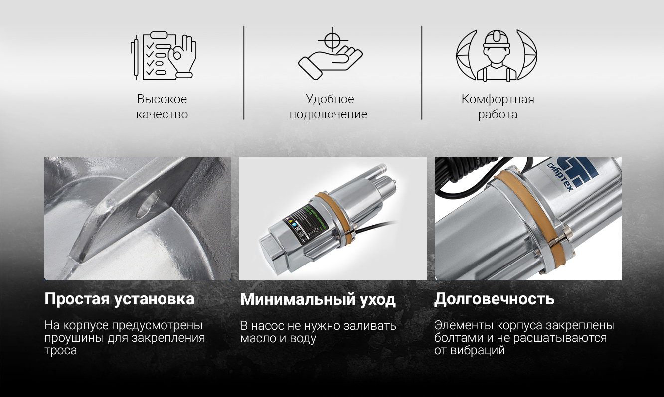 Верхний забор воды не позволяет насосу перегреваться, что гарантирует надежную работу долгое время.