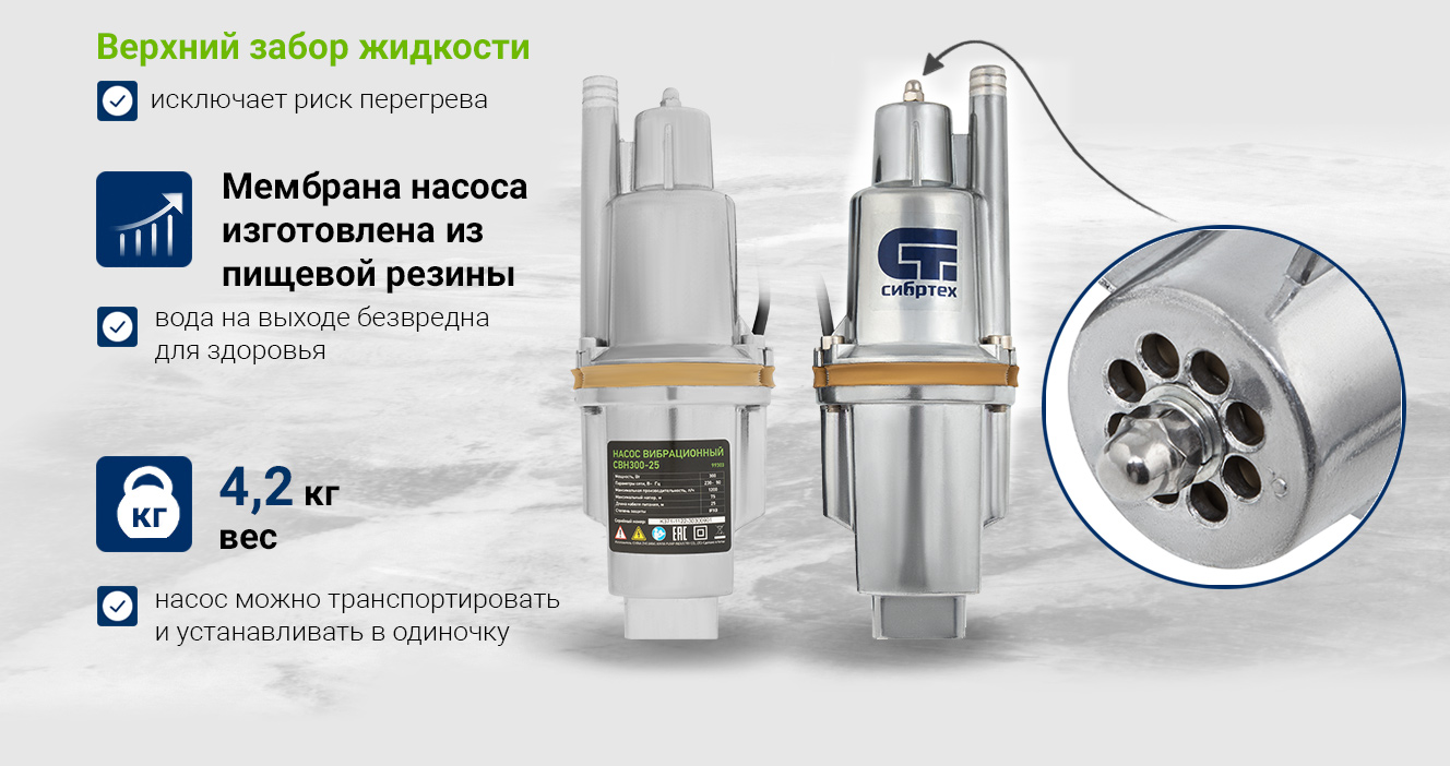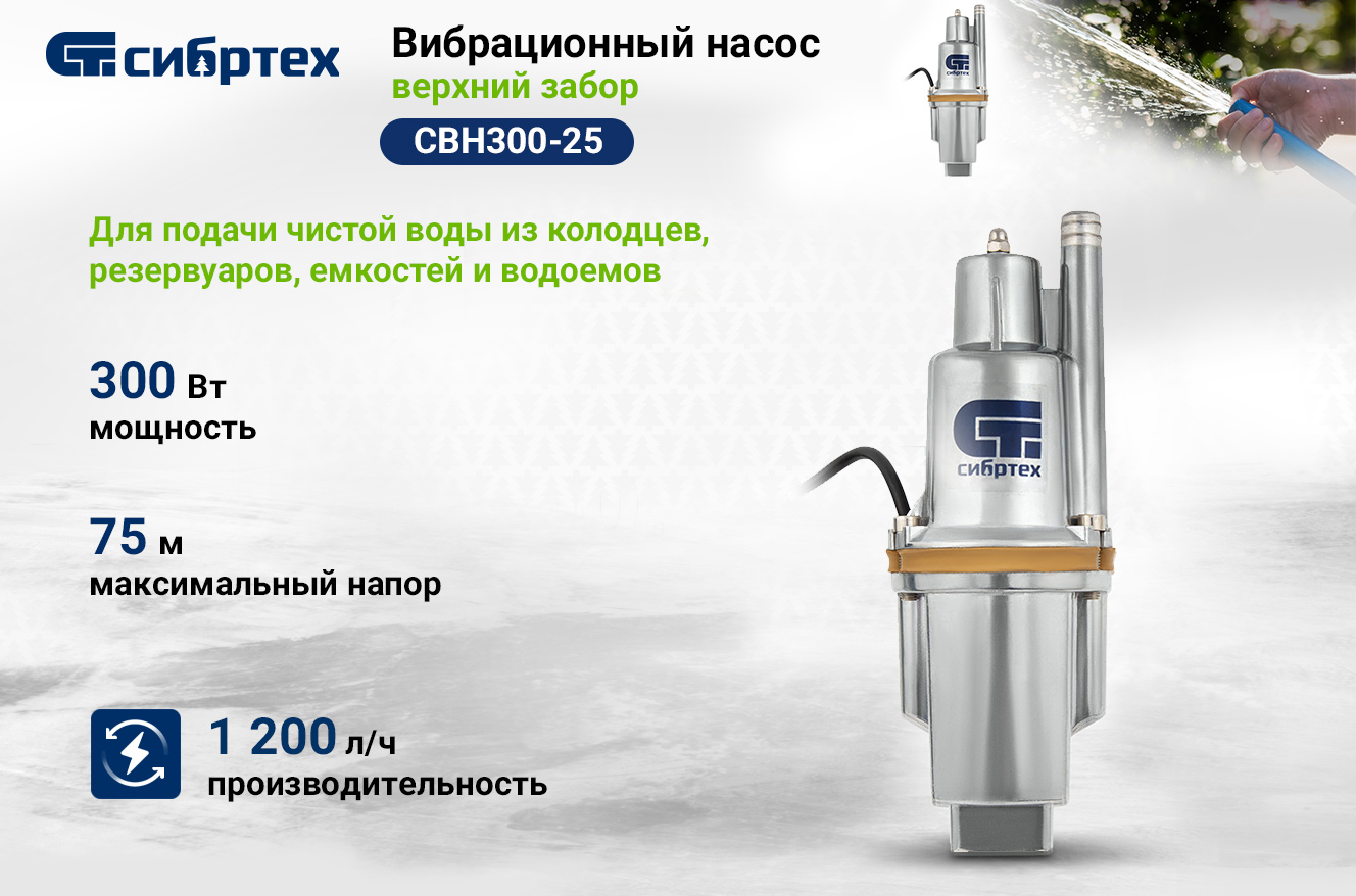 Вибрационный насос СИБРТЕХ СВН300-25 кабель 25 м 99303