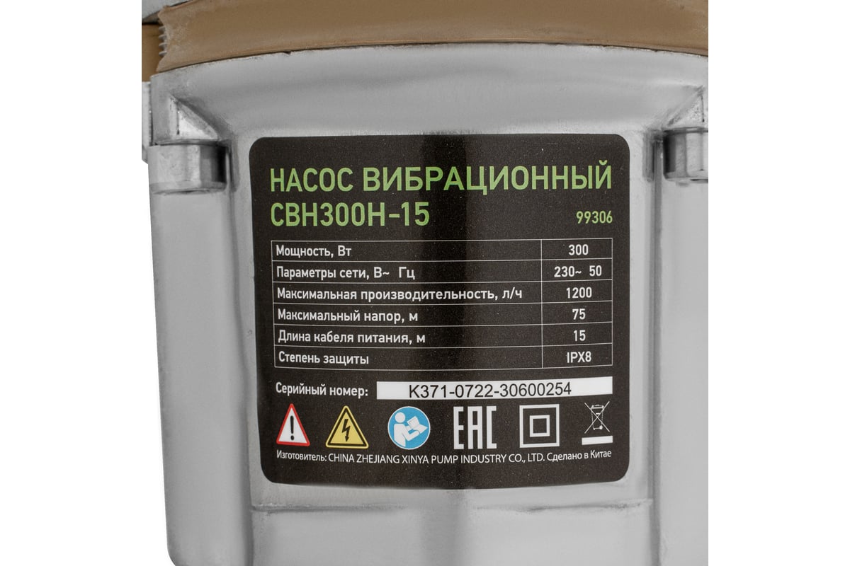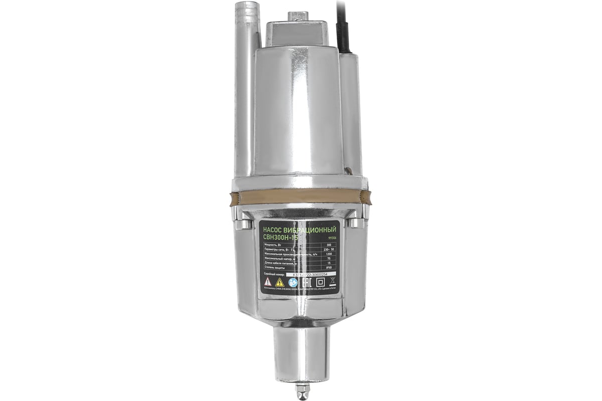 Вибрационный насос СИБРТЕХ СВН300Н-15 кабель 15 м 99306 используется для подачи воды из колодца и скважин, а также подходит для перекачивания чистой и пресной воды.