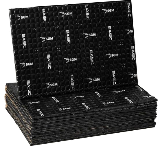 SGM Basic - уникальная системашумоизоляции в автомобиле обладающая высокой звукоизоляцией, которая выступает гарантом защиты кузова от коррозии, дополняющий тюнинг автомобиля. Алюминиевая фольга толщиной 60 мкм с полимерной самоклеющейся композицией, в качестве которой выступает мастика. C монтажной стороны материал защищен силиконизированной бумагой.