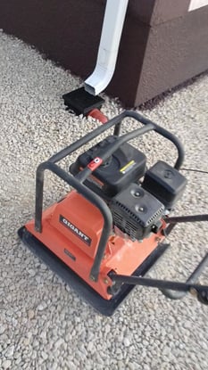 Виброплита хорошая,трамбует хорошо.В комплекте есть полиуретановый коврик и транспортировочные колёса, правда минус этих колёс что передвигать удобно только по твердой поверхности (бетон, плитка,асфальт) а так в основном виброплита супер.