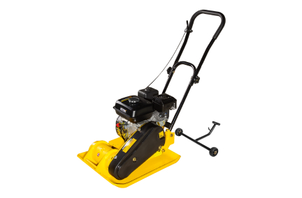 Конструкция максимально продумана для комфортности эксплуатации. Устройство оснащено прочной металлической рукояткой с виброгасящей накладкой и выведенным на нее рычагом газа. Все элементы конструкции расположены в пределах доступности, металлические поверхности защищены от коррозии специальным покрытием. Наличие 2 передаточных ремней повышает надежность и увеличивает срок службы агрегата. Бензиновая виброплита оснащена виброгасящими демпферами, предотвращающими передачу вибраций от плиты к двигателю. Крепление вибратора к плите осуществлено посредством сварки. Модель имеет съемные колеса для удобства перемещения.