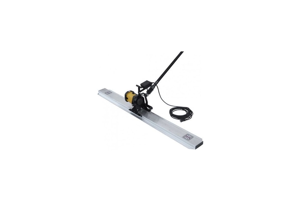 - Виброрейка – агрегат, использующий в качестве привода электрический мотор. Горизонтальное перемещение направляющей рейки (усилием оператора) в сочетании с ее вибрацией равномерно распределяет бетонную смесь на обрабатываемом участке, сокращая до минимума пористость бетона.