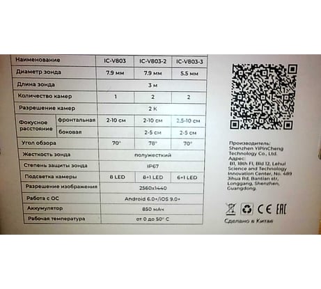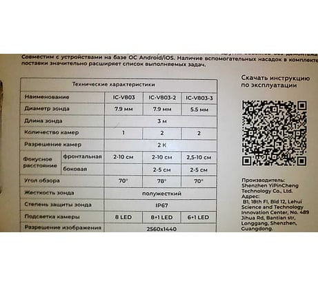 Покупалось для осмотра авто. Первое, что разочаровало, это качество картинки. Приложенные изображения получены из разных камер в максимальном и минимальном разрешении и они абсолютно одинаково плохие. Никаких 2k здесь нет, максимум HD 720p. Предполагаю, что еще меньше. Подсветка основной камеры на порядок слабее торцевой. Измерив, рабочую длину зонда оказалось, что и здесь подвох, вместо 300см всего 287см. Жалею, что купил. Лучше доплатить и поискать что-то посерьезнее с похожими, но честными характеристиками.