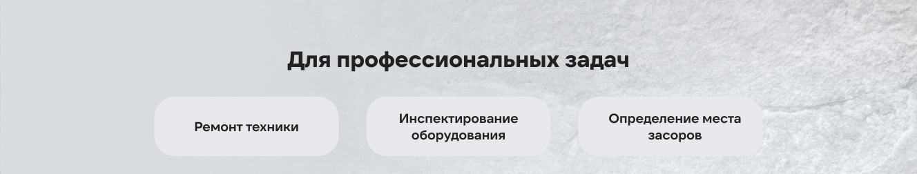 - Широкий спектр применения: инспектирование в области технического обслуживания и ремонта, осмотр механизмов без разборки, инспектирование объектов ЖКХ