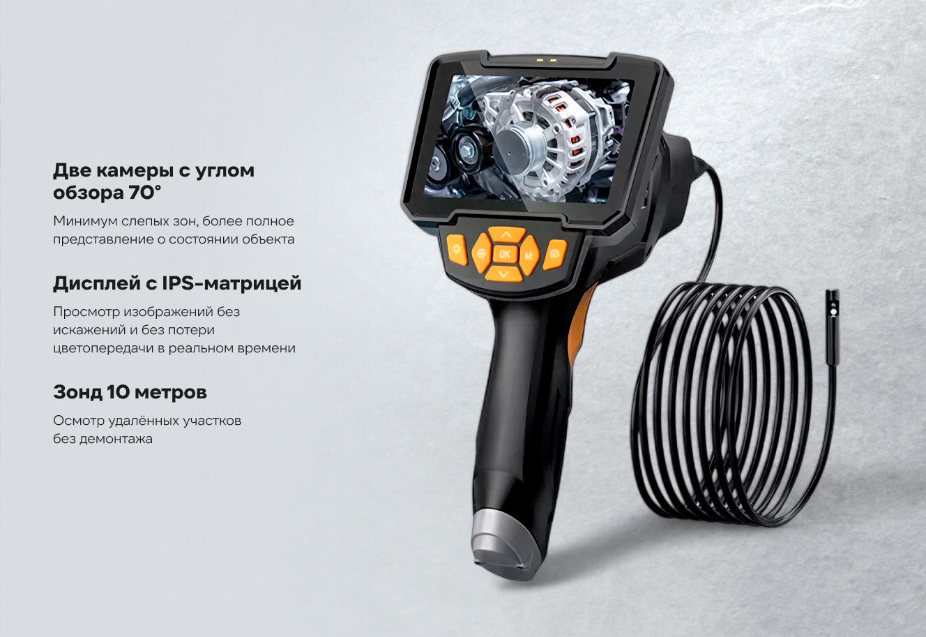 - Длина зонда 10 метров: позволяет проводить осмотр на значительном расстоянии от точки доступа