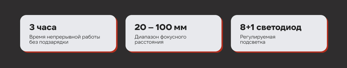 - Две камеры: возможность одновременного получения изображений с разных углов значительно увеличивает объем информации для анализа, что особенно полезно при осмотре сложных объектов