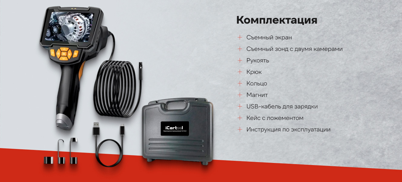 Видеоэндоскоп iCartool IC-V112A-10 с длиной зонда 10 метров и двумя камерами – это высокотехнологичное устройство, предназначенное для инспекции труднодоступных мест и внутренних полостей. Идеально подходит для использования в таких отраслях, как машиностроение, строительство, энергетика и ремонт.