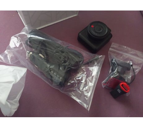 Очень компактный, в жизни еще меньше чем на фото. Снимает хорошо, в кабеле питания есть usb-разъем для зарядки телефона.