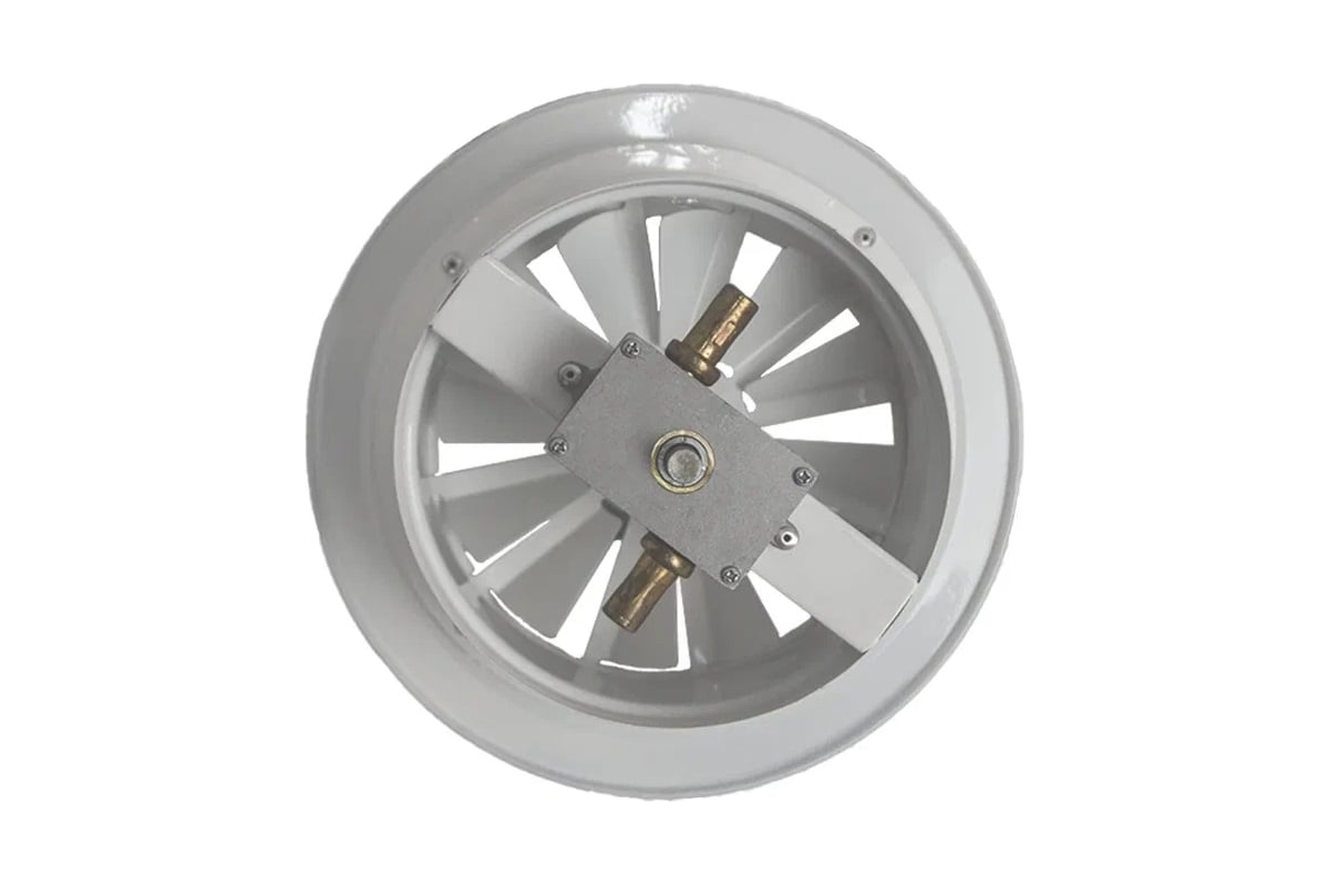 Вихревой термодиффузор SVR-Termo 315 Ventart 4687202643387 с изменяемой геометрией струи с лопатками, поворачиваемыми при помощи термопривода, в комплекте с перфорированным компенсатором. Изготавливается из алюминия (лопатки стальные) и имеет защитное порошковое покрытие белого цвета (RAL 9010 или RAL 9016).