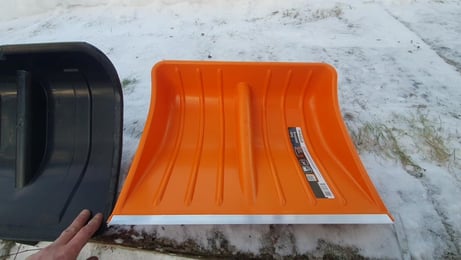 Снеговая лопата с широким ковшом для расчистки больших территорий.