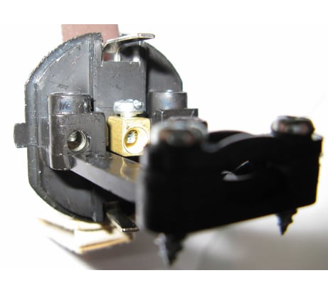 Жилы зажимаются не шайбами, а концами винтиков. Кожух и прижим для провода крепятся шурупами, а не винтами с гайками. Нет трубки, предотвращающей изгиб провода на выходе из штепселя.