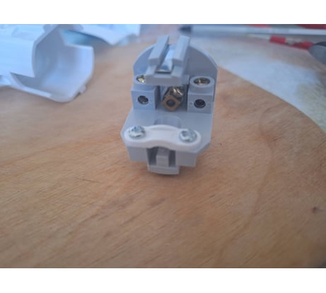 Винт земли (по центру) немного упирается в пластик. Он расположен под углом 45 градусов. Может мне показалось, но площадь соприкосновения с контактом (проводом) немного настораживает (маловато по моему мнению).