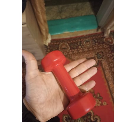 Нормальная такая гантелька, на ощупь немного мягкая, приятная. Покупал для детей, им понравилась