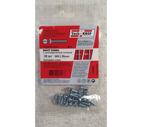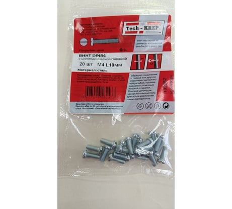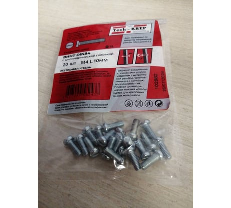 Отзывы о винте DIN 84 с цилиндрической головкой, оцинкованный М4х10, 20шт - пакет Tech-Krep 102982