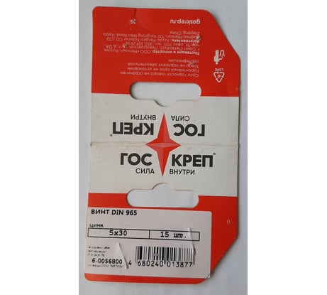 Сопутствующие товары для винта Госкреп М5х30 DIN965 15 шт. 6-0056800