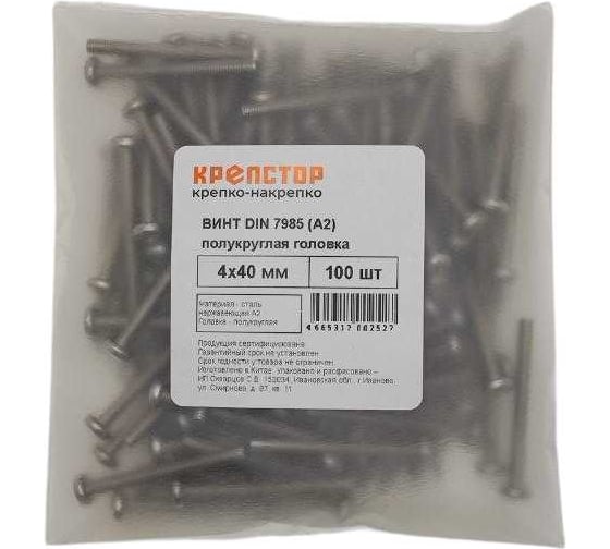Винт Крепстор 4х40 п/к головка, крестовой шлиц DIN 7985 А2, 100 шт 4665317002527