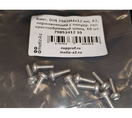 Винт Metiz-A2, DIN 7985M4x40 мм, А2, нержавеющий с полукр. гол. крестообразный шлиц, 10 шт. 79852440 10