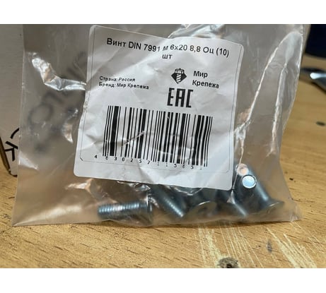 Вопросы и ответы о винте Мир Крепежа DIN 7991 М6x20, 8.8, цинк 10 ЦБ-00092862