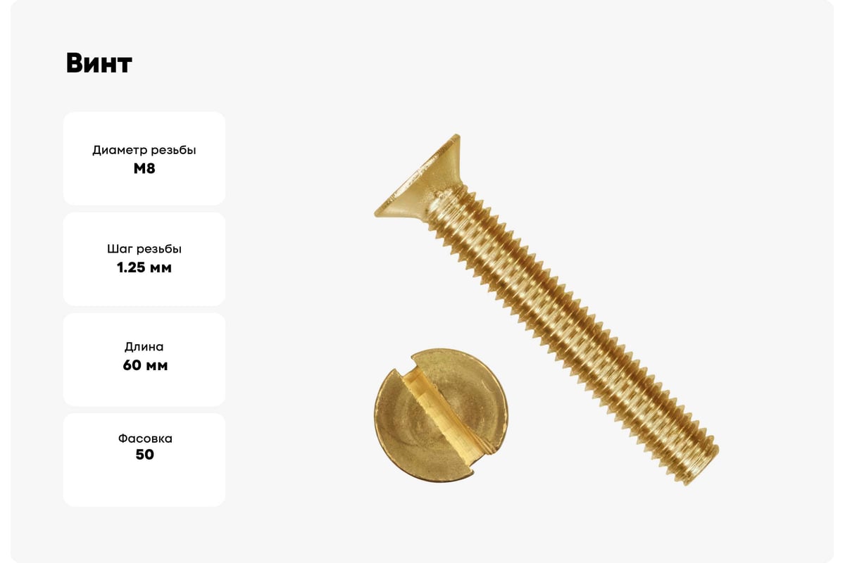 Винт Море-Метизов DIN 963 латунь M8x60 мм, 50 шт. VINT963L86050М