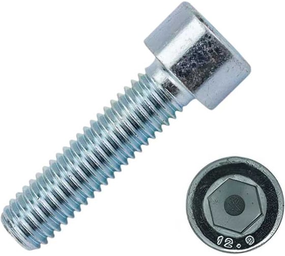 Винт высокопрочный оцинкованный М6х20 мм. Винт (болт) с внутренним шестигранником DIN 912 – высокопрочный метрический крепеж из стали класса прочности 12.9 с цинковым покрытием, без которого не обходятся такие отрасли промышленности как машиностроение, приборостроение, производство станков, промышленного оборудования, дорожной и строительной техники. Механические свойства винта под шестигранник гарантируют надежность узла крепления при повышенных нагрузках и вибрации, возможность приложения высокого момента затяжки при помощи имбусового ключа и возможность многократной сборки/разборки без риска быстрого износа шлица. Гальваническая оцинковка болтов с внутренним шестигранником защищает их от коррозии в нормальных и слабоагрессивных условиях внешней среды.