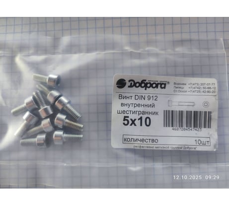 Винт с внутренним шестигранником Доброга М5x25 цинк DIN 912 10 шт. ЦБ-00030350