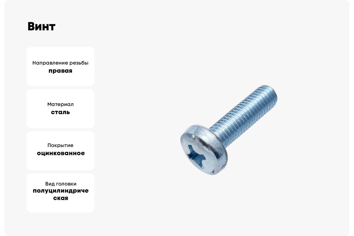 Винт Стройметиз М6х12х12 мм, DIN 7985, полуцилиндр, цинк, уп. 100 шт., пакет 3101628