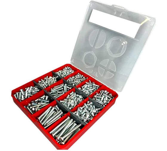 Винты с шестигранником М6,М8 ОЦ 7380 к.п.10.9 в органайзере: М6х8 - 85 шт. М6х10 - 75 шт. М6х20 - 40 шт. М6х25 - 35 шт. М6х40 - 20 шт. М6х50 - 20 шт. М8х10 - 35 шт. М8х12 - 30 шт. М8х20 - 25 шт. М8х25 - 20 шт. М8х40 - 15 шт. М8х45 - 10 шт. Винт оцинкованный под шестигранник ISO 7380, класс прочности 10.9 – высокопрочный крепёж для надежных соединений. Прочный и долговечный винт с полукруглой головкой и внутренним шестигранником соответствует международному стандарту ISO 7380. Изготовлен из закалённой углеродистой стали, что обеспечивает высокую прочность (класс 10.9) и устойчивость к нагрузкам. Внутренний шестигранник (шлиц) – удобство монтажа с помощью ключа-шестигранника. Точность изготовления – гарантирует плотную посадку и надежное крепление. Полукруглая головка – обеспечивает аккуратный внешний вид и снижает риск повреждения поверхностей. Применение: подходит для машиностроения, сборки металлоконструкций, ремонта автомобилей и промышленного оборудования. Благодаря высокому классу прочности 10.9 выдерживает значительные механические и вибрационные нагрузки.