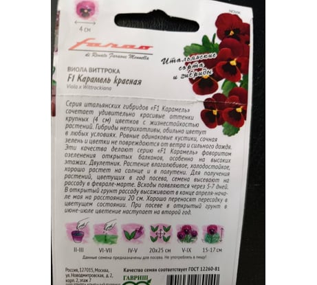 Виола ГАВРИШ Карамель красная F1, Виттрока Анютины глазки, 7 шт, серия Фарао 1071857376