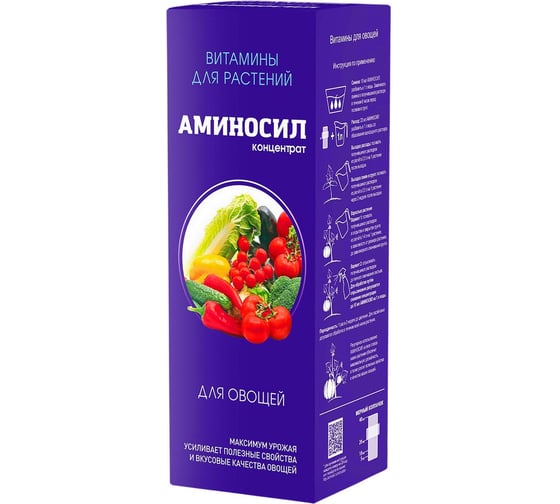Удобрение Аминосил концентрат предназначен для всех видов овощей (для томатов, помидор, огурцов, картошки, кабачков, перцев, лука, капусты). Витаминная подкормка улучшает защитные свойства в периоды засухи и заморозков, обеспечивает активный рост и обильное плодоношение. Витамины для овощей улучшают полезные свойства и вкусовые качества, вкусный и полезный урожай без химии.