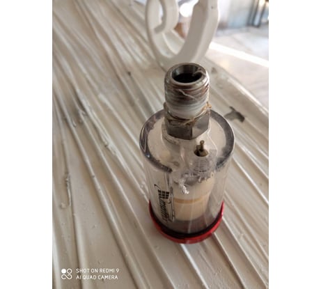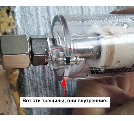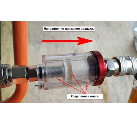 Неплохая штука все кто боится что его разорвет рекомендую уложить в термоусадку как сделал я никаких трещин нет ни на 4 ни на 8 ми атмосферах ничего не травит. Купил для продувки и чистки пк и ноутбуков на безмасляяный компрессор к стате кто то тут рисунок выложил неправильно его подключил. Вход у него со стороны красной крыжки см. Описание вход 1/4м т.е. male мама выход 1/4f папа сами смотрите на входе мелкое отверстие внутри колбы под прокладкой отверстие больше поэтому входит воздух сложнее чем выходить и ничего не разорвет и не лопнет правильная установка и не ронять и все ок.