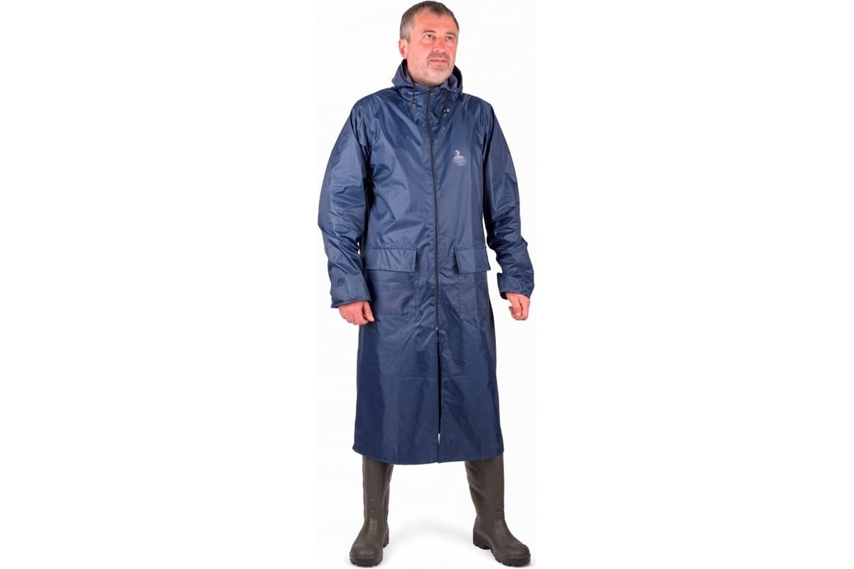 Влагозащитный плащ-дождевик БЕРТА синий, рост 170-176 800-60-62 – свободная модель с прямым кроем не стесняет движения, можно носить его на верхнюю одежду. Подойдет для различных видов деятельности: строительства, работы на открытом воздухе, для рыбалки, прогулок, походов, для работ в саду или огороде.