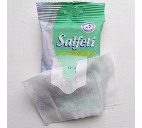 Влажные антибактериальные салфетки в мягкой упаковке SALFETI 70900 для очищения кожи рук и поверхностей.